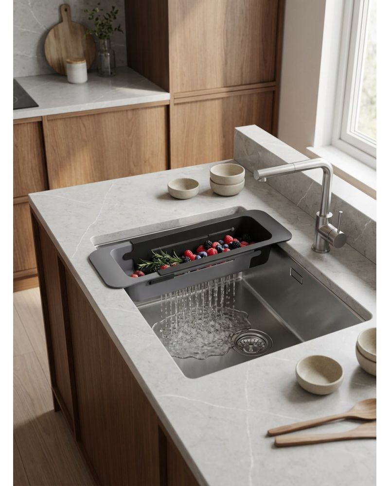 Mutfağınız için maksimum konfor sağlayan çok amaçlı premium süzgeç. Teleskopik tasarımıyla çoğu evye modeline uyum sağlar.